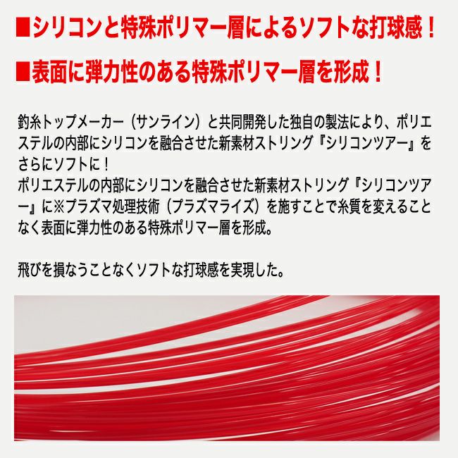 他の画像を見る ボールを掴んではじく!しなやかさと強靭さを合わせ持つ、シリコン融合の新素材ストリング! シリコン ツアー(SILICONE TOUR)20張りパック(単張り 13.5m×20張り) 送料無料 ¥ 45,650 税込 カートに入れる お気に入りに登録する
